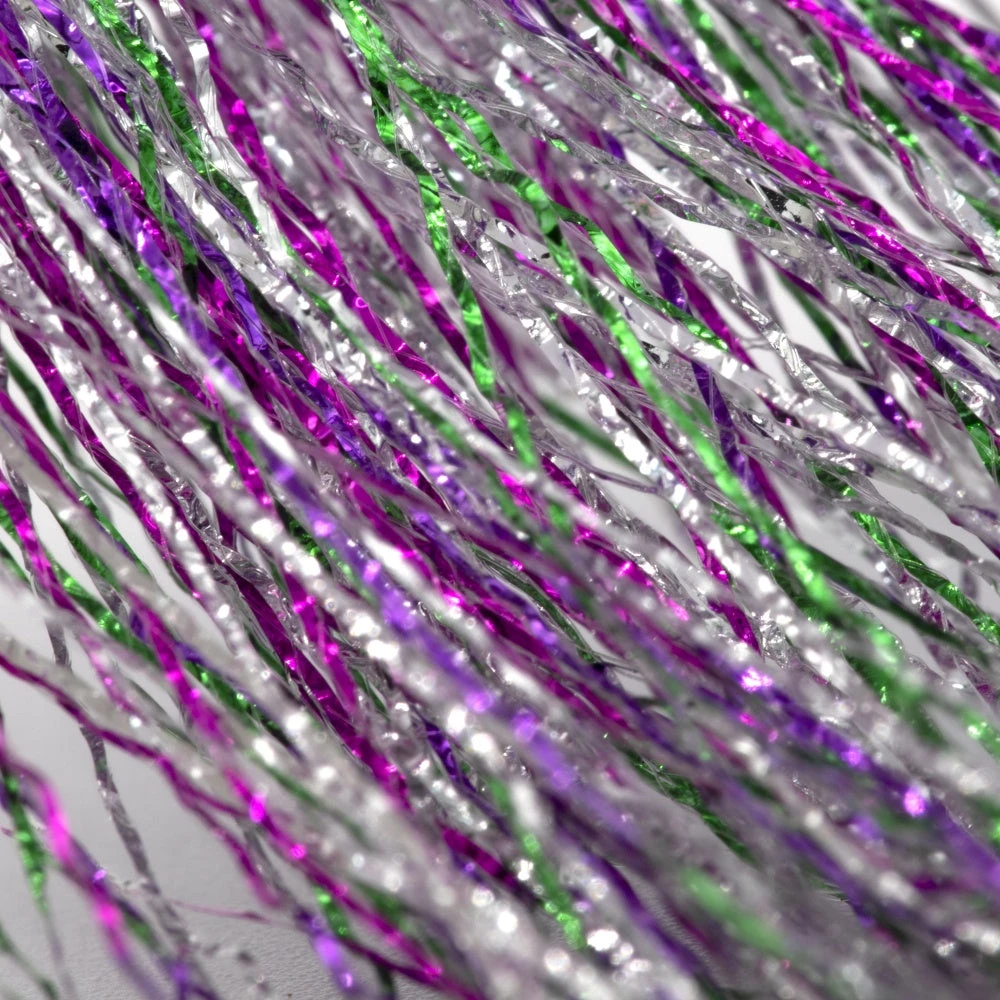 Core to the SemperFlash blends is a unique tinsel with colors that change horizontally on each single strand of tinsel. These are an amazing blend of multicolor strands of tinsel SemperFlash brings a lot to tying. Look close at SemperFlash and you will see each single strand has multiple colors built into it. That is further enhanced with the highlighter blends or background colours to offer a unique hank of tinsel in the blends where for we blend gold, silver or black for example to highlight the core tinsel even more. Think of using SemperFlash options in light day/dark day flies!