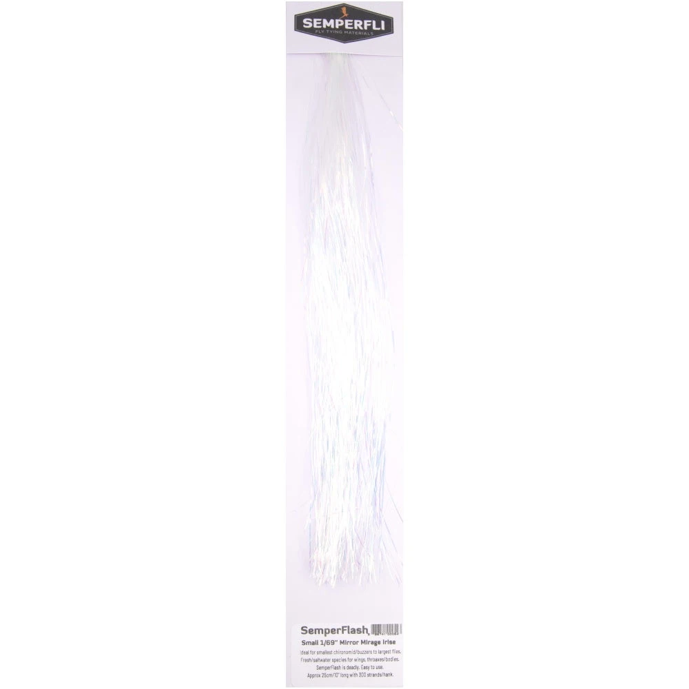 There are 300 strands of this beautiful SemperFlash in each pack which is such great value. With full useable length of 10” strands these can be used to create flies from the smallest chironomid/buzzer breathers to huge Tarpon or Muskie flies using the full 10” length of this amazing SemperFlash winging material