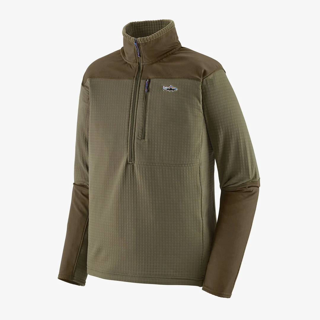 he Patagonia Men’s Long Sleeved R1 Fitz Roy 1/4 Zip is the perfect mid layer for cooler fishing conditions.