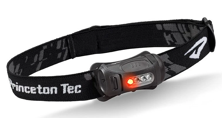 The Princeton Tec Fred combines ergonomic design, reliable function, and light weight to make one killer headlamp. The red LED helps preserve night adjusted vision while still adequately illuminating a campsite, gear bag, or task at hand. A hold of the large push button switches to three Ultrabright white LEDs that provide a flood beam; each color has a high and low mode.