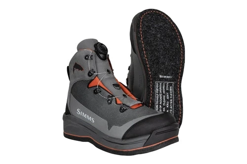 The key to powering through the obstacles of a river system is great footing. The rugged, responsive Guide BOA Boot stacks agility and stability in your favor with sticky felt sole traction and an exacting BOA-lacing system fit. The Simms Guide Boa Felt Sole Fly-Fishing Boot is a very innovative and feature-rich Simms fly-fishing boot that features a TPU outsole plate for stud retention and is built on the same foot platform as the G3 boot. The grommets on the Guide Boa boot articulate to take away fixed rubbing points on the lacing system. These Guide Boa Boots are the replacement to the Simms Headwaters Boa Boot.