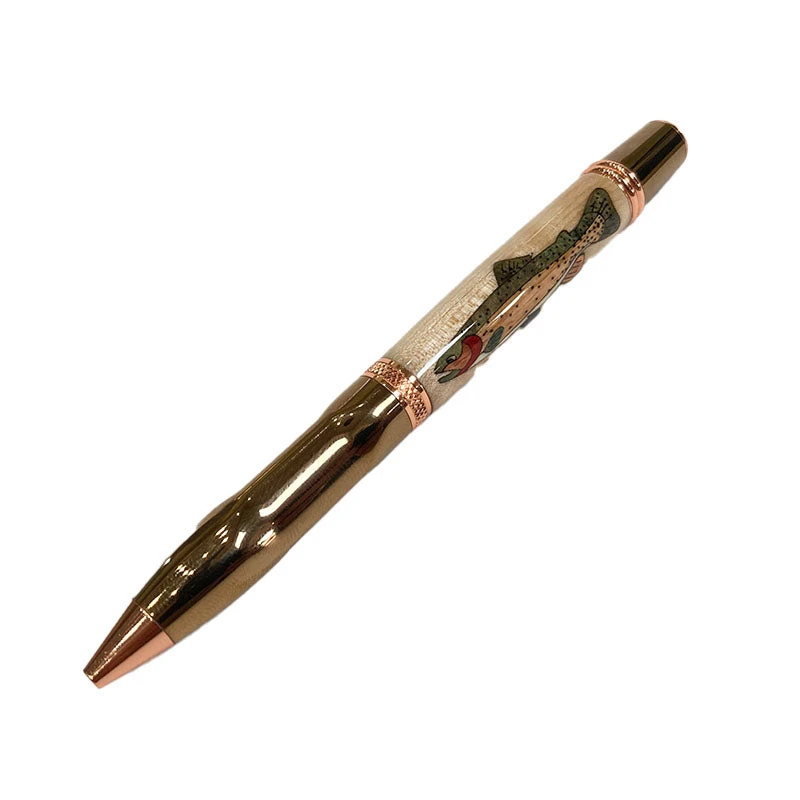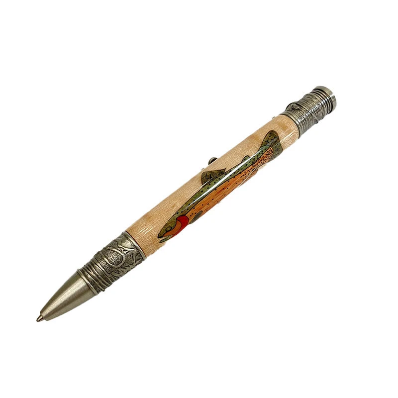| Color | Rainbow Trout, Four Tiny Trout, Blue and White Marbled, Purple and Blue Marbled, Orange Marbled, Red White & Blue Cap Pen, Blue Cap Pen, Rainbow Trout 2, Sockeye Salmon, Tuna, Bass, Pheasant |